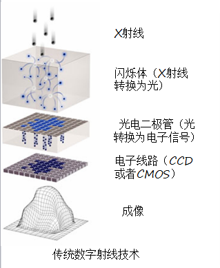 传统数字射线技术为间接探测技术,利用闪烁体进行转换X射线,具有如下问题:较差的分辨率;在高能条件下图像结果不清晰;数据采集速度低;重影问题严重等。目前最先进数字射线成像技术为碲化镉直接将X射线转换为电子信号,优点如下:动态范围大;近乎完美的空间分辨率;快速检测;双能量成像;低剂量有良好的成像效果.